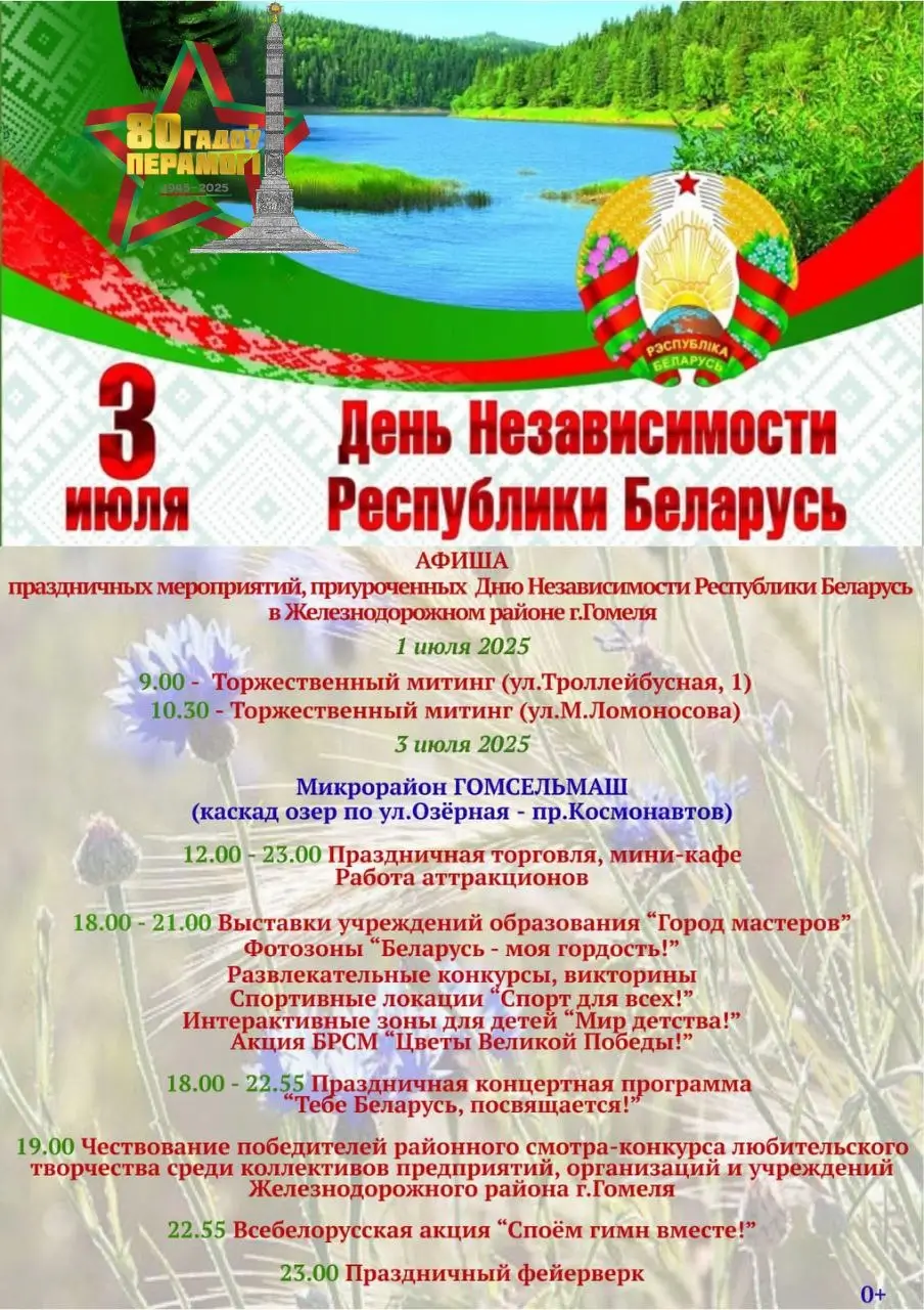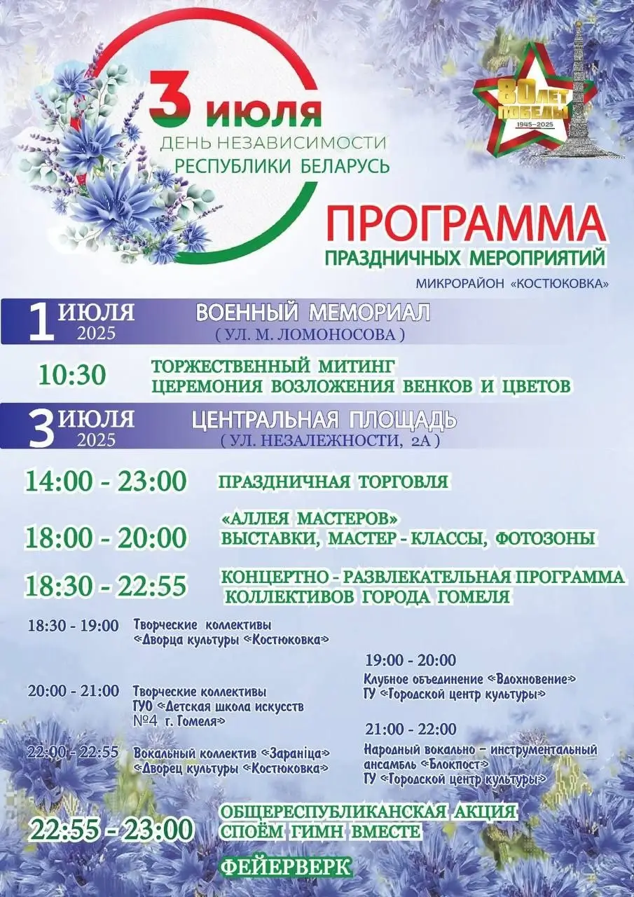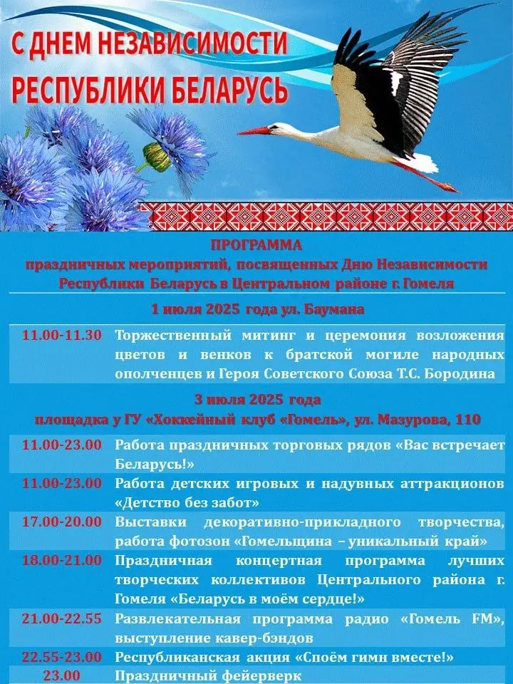 Программа празднования Дня Независимости в Гомеле — 2 и 3 июля