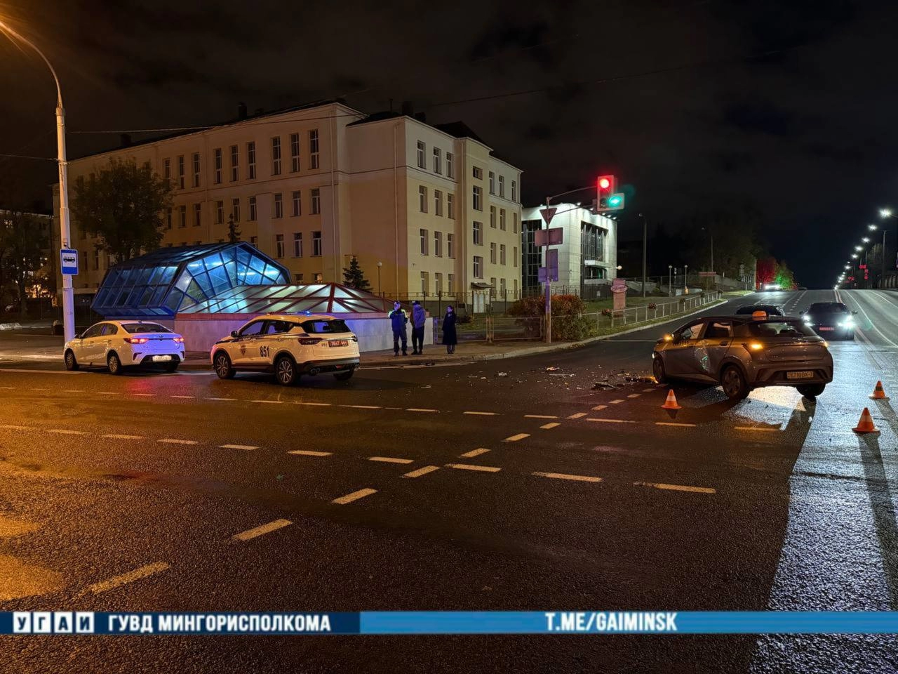 Фотографии с места происшествия опубликованы в Telegram-канале УГАИ ГУВД Мингорисполкома, где видно, что после столкновения движение по одной из полос было временно ограничено, а сотрудники ГАИ регулировали поток вручную.