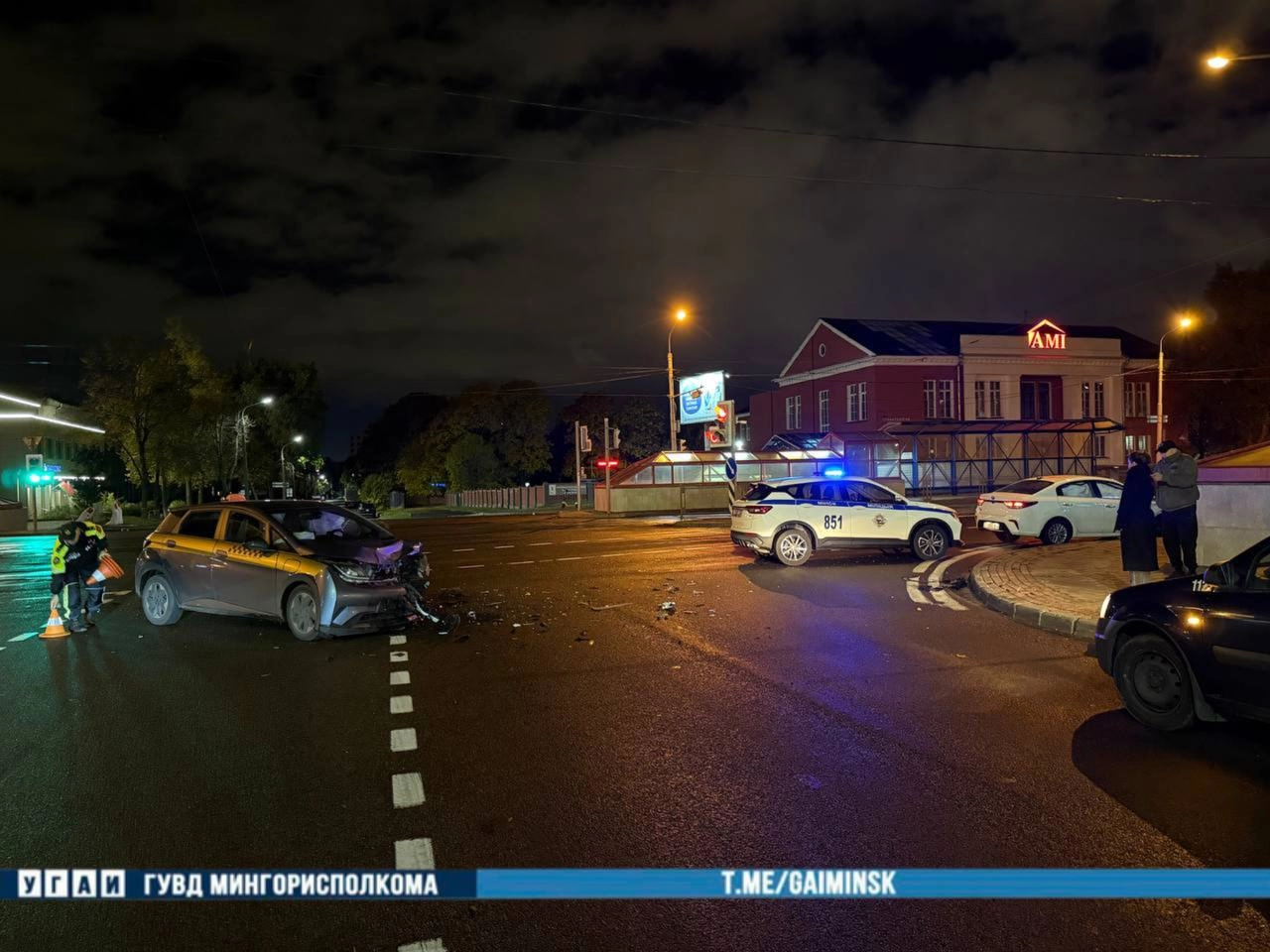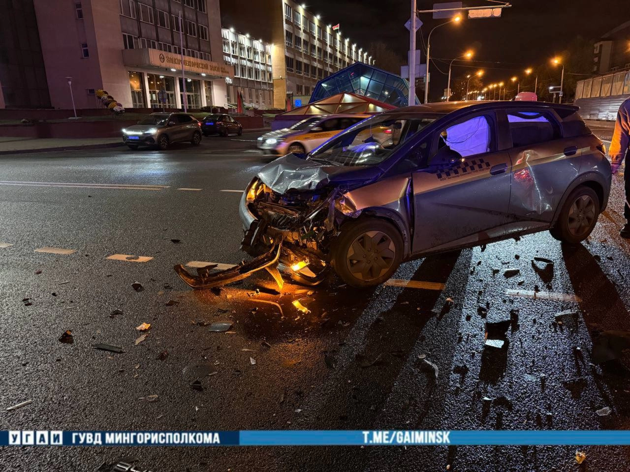 По информации ГАИ Минска, авария случилась днём 14 октября. За рулём автомобиля Kia находился 31-летний водитель, который, выполняя поворот налево, проигнорировал красный сигнал светофора. В этот момент по встречному направлению двигалось такси BYD, с которым и произошло столкновение.