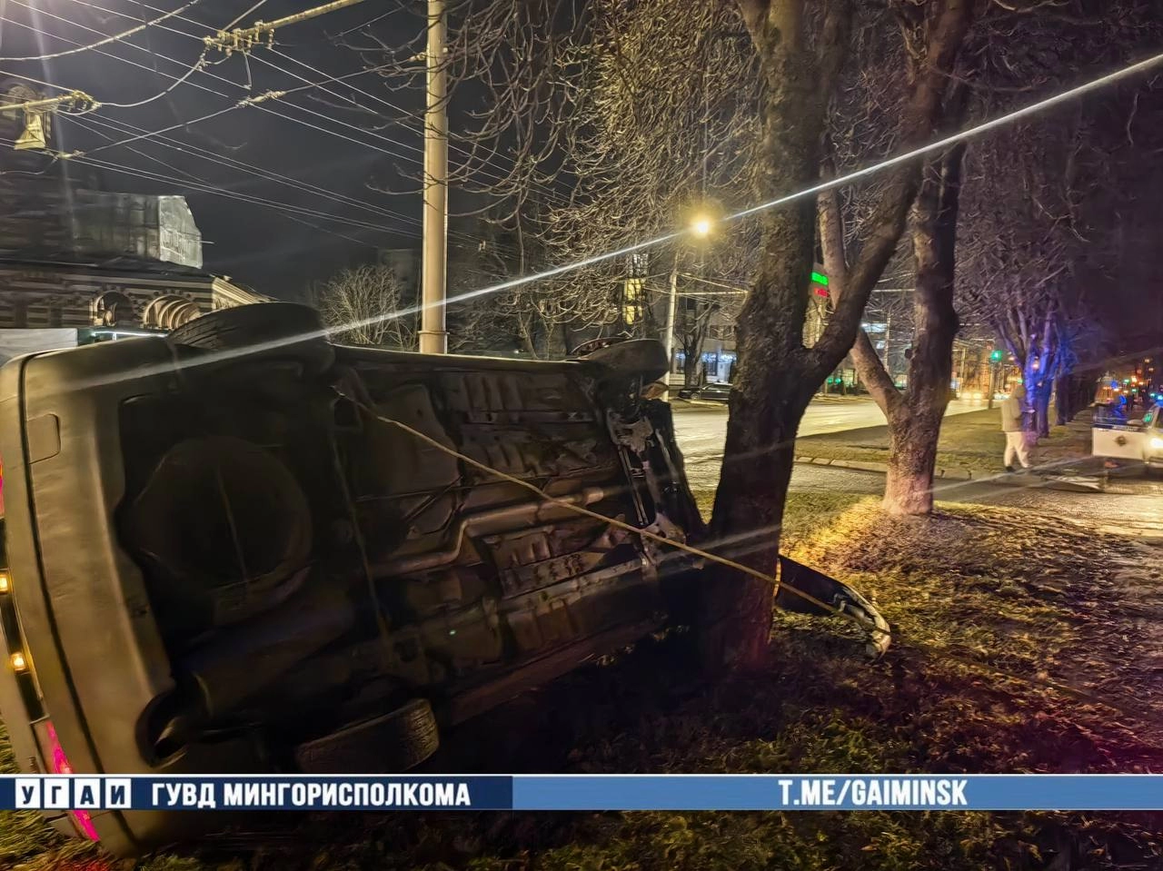 В Минске легковой автомобиль опрокинулся после съезда с дороги на улице Железнодорожной