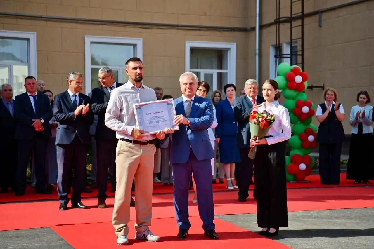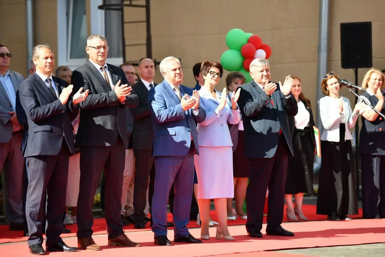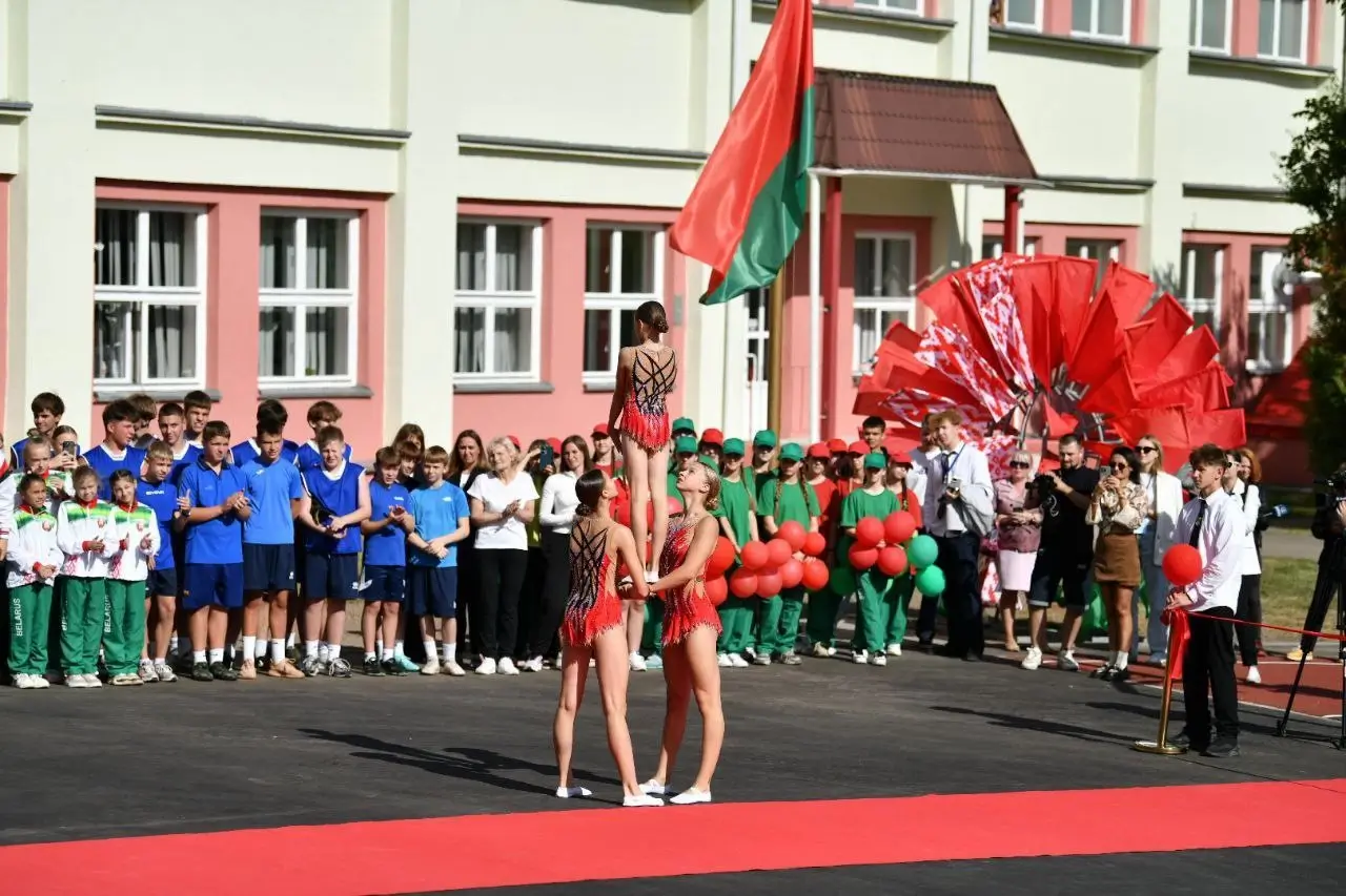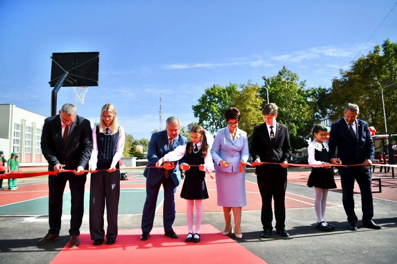 Торжественная церемония прошла при участии руководителей города и области. Красную ленту вместе со школьниками перерезали председатель Гомельского городского Совета депутатов Елена Алексина, заместитель председателя облисполкома Андрей Барановский, а также представитель Управления Президента РФ по гуманитарной политике Николай Овсиенко.