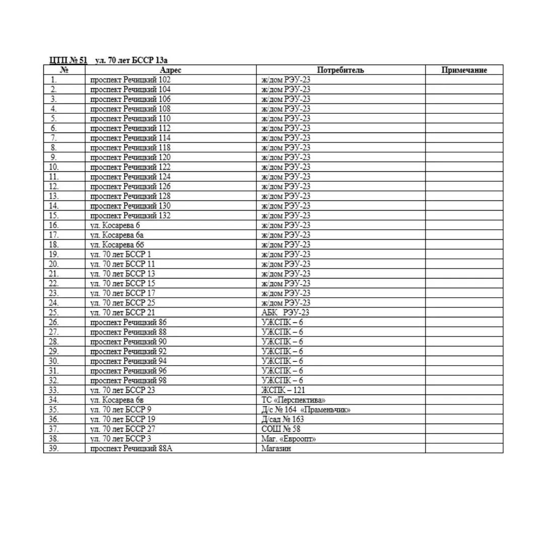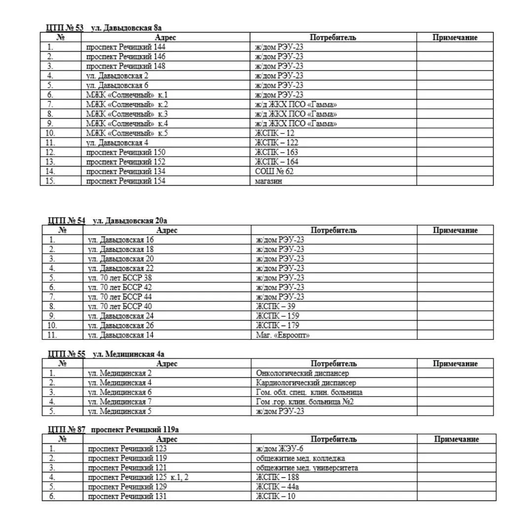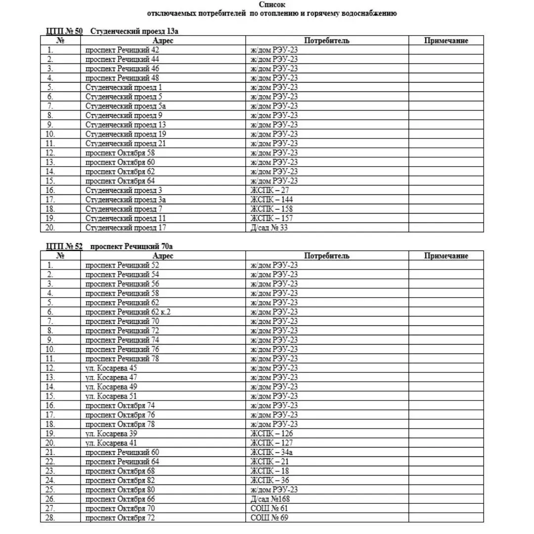 Отключение отопления и горячей воды в Советском районе Гомеля 12 ноября