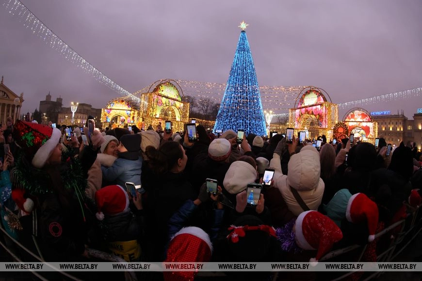 В Минске включили новогоднюю иллюминацию и зажгли главную ёлку страны